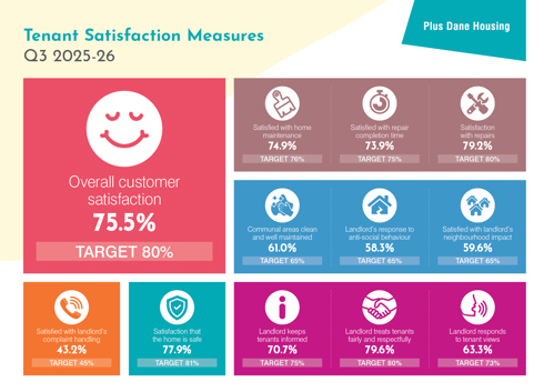 Plus Dane has commissioned Acuity to carry out the survey (from 2025/26) with our customers. It is a perception survey, which is a set of questions Acuity will ask to a sample of our customers to understand how satisfied or dissatisfied you are with the services we provide. It is based on standardised questions used by other landlords.